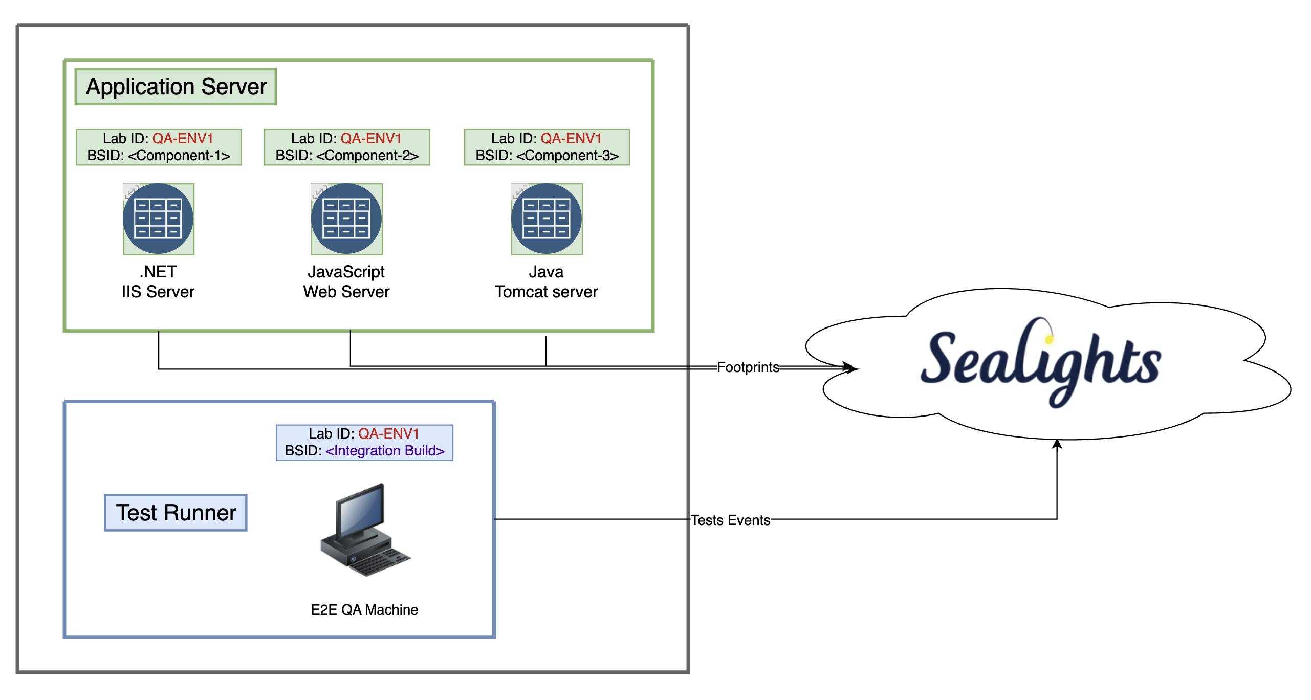 All the 3 components are reported to Sealights dashboard and their active instance (application servers) share the same LabID.