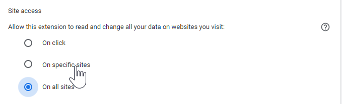 Sealights Browser Extension requires permission for all the pages I can access with my browser. I would like to restrict it to my SCM and application servers.